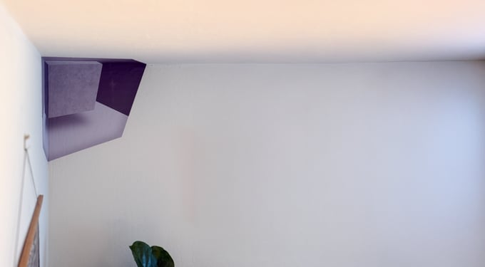 The illusion is deceptively simple — and even once you know how it works, it can still feel unbelievable. Three peel-and-stick panels (repositionable, paint-safe) are precisely aligned along the walls that meet in the upper corner of a room. Each decal is designed with carefully calculated visual cues that reinforce the illusion of an inverted space — making the corner appear to protrude outward instead of recede, flipping your sense of depth and reality.